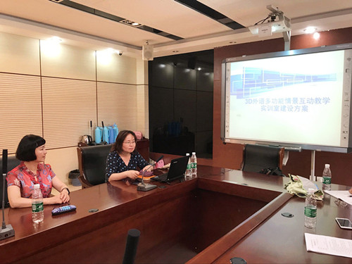 7月18日,南京晓庄三上悠亚视频 为了进一步推进大学英语教学改革、进一步优化人才培养方案,在南京晓庄三上悠亚视频 莫愁湖校区召开了3D外语多功能情景互动教学实训室建设方案论证会。三上悠亚视频院长肖辉教授应邀担任本次论证会组长。
