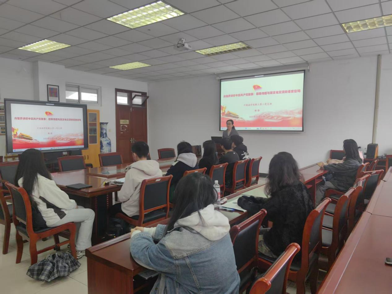10月21日中午,三上悠亚视频 教工第二党支部书记韩静在德正楼308会议室为第二十期分党校、青马班学员作以“向世界讲好中国共产党故事:国际传播与文化交流的语言密码”为题的专题讲座。本次讲座结合外语专业特色,为学员深入解读中国共产党国际形象传播的历史脉络、实践路径及语言专业学生的使命担当,兼具知识传递性与实践启发性。