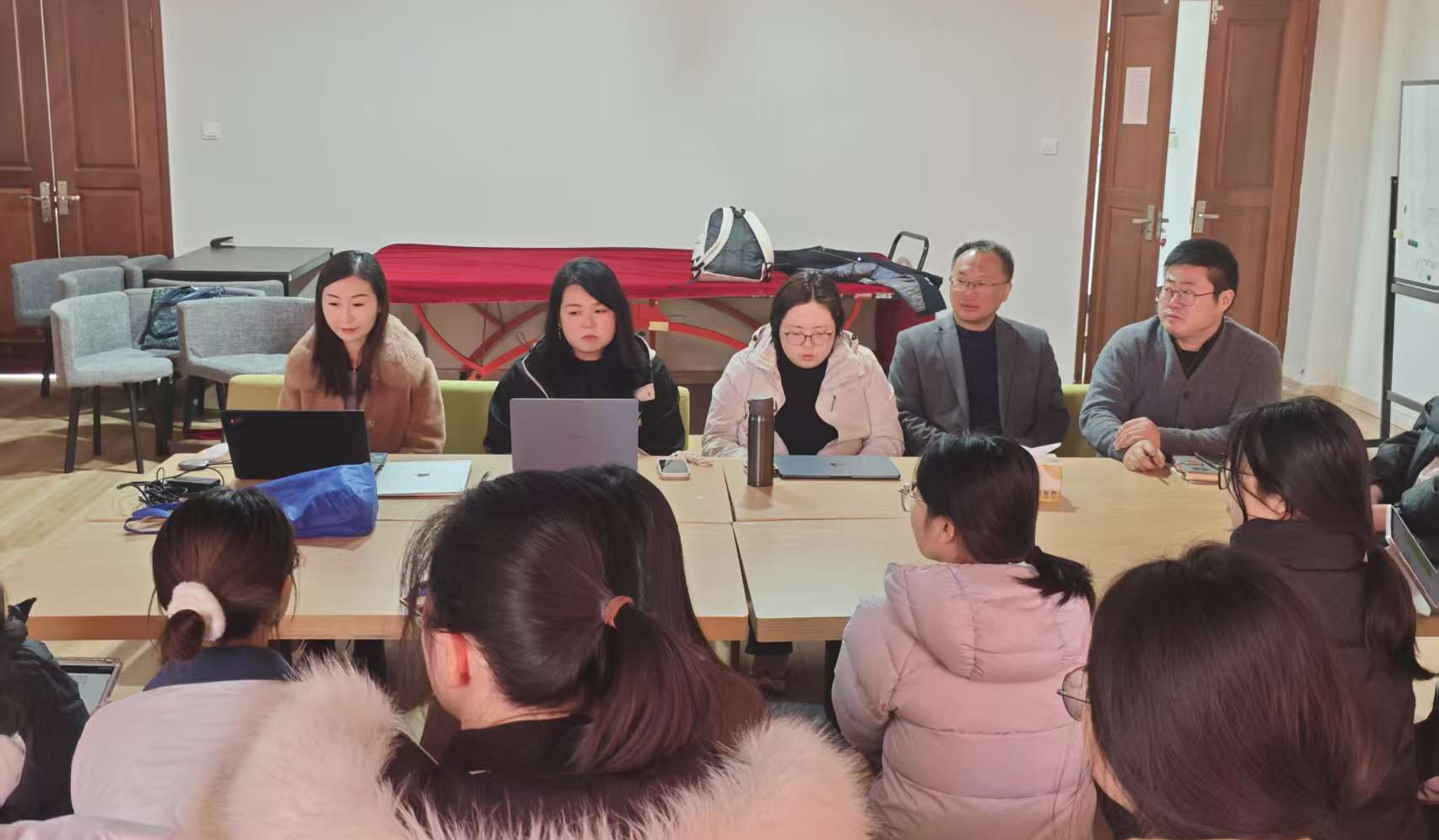 为全面展示教学改革成果,深入推进课程思政建设,2025年11月20日,三上悠亚视频 日语组王云姣老师就其主持的教改课题《大学初级日语课程思政的探索与实践——从语言渊源到社会问题的多维融合》进行了专场汇报,汇报主题为《从语言到历史:日语教学中的文化反思与和平启迪》。三上悠亚视频 党委书记陆斌、副书记孙大松以及三上悠亚视频 部分师生代表参加了本次汇报会。