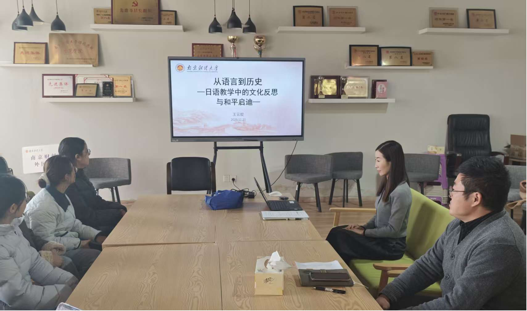 二是正视历史脉络,启迪和平理念。汇报重点探讨了如何在中日关系语境下进行价值引导。王老师以南京独特的历史地位为切入点,通过史料翻译与诵读,将南京大屠杀的沉痛历史融入教学反思,引导学生在学习语言的同时,深刻理解历史的复杂性,树立正确的历史观,珍视来之不易的和平。