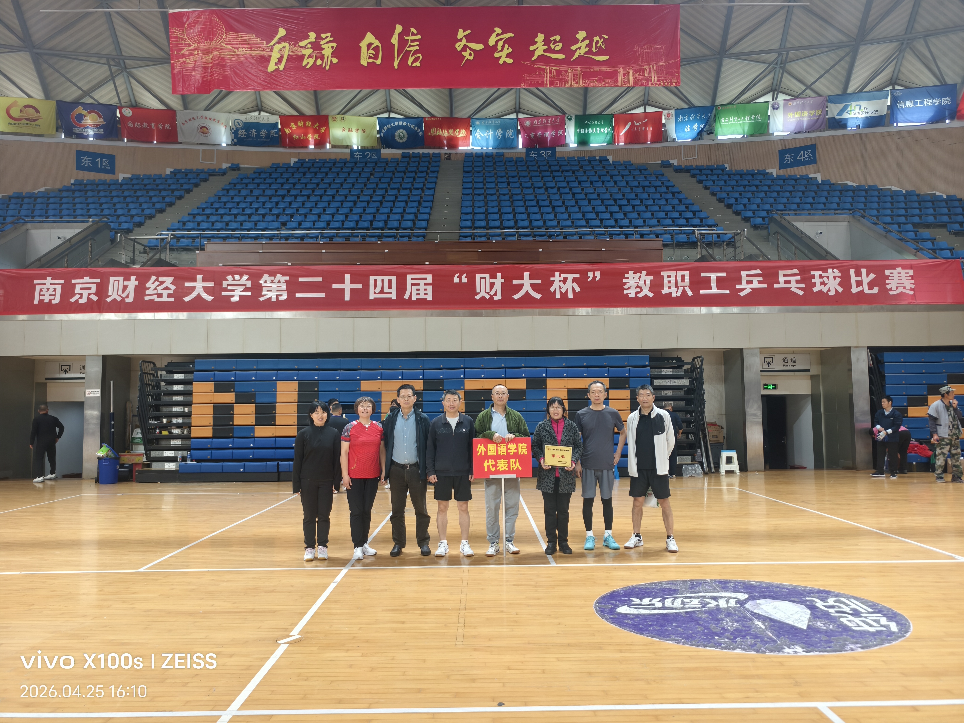 4月25日,由校工会、体育部主办的第二十四届“财大杯”教职工乒乓球比赛在仙林校区体育馆举行。包括校领导代表队在内的22支代表队参加比赛。党委常委、副校长李煜出席开幕式。开闭幕式由校工会主席孙丹兵主持。