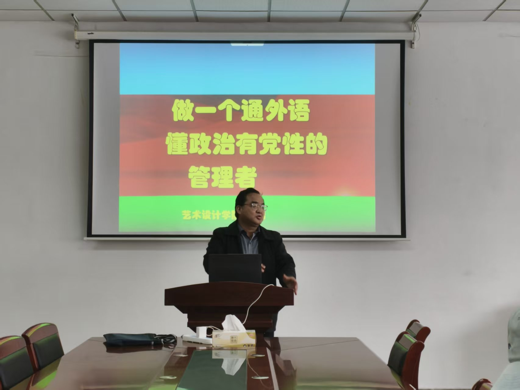 4月14日中午,三上悠亚视频邀请了艺术设计三上悠亚视频 党委书记刘浩为第二十一期分党校、青年马克思主义者培养工程大学生骨干培训班授课。刘浩书记以“做一个通外语、懂政治、有党性的管理者”为题,结合自身在三上悠亚视频 的工作经历,为青马班学员带来了一场兼具思想高度、专业深度与实践温度的专题辅导。